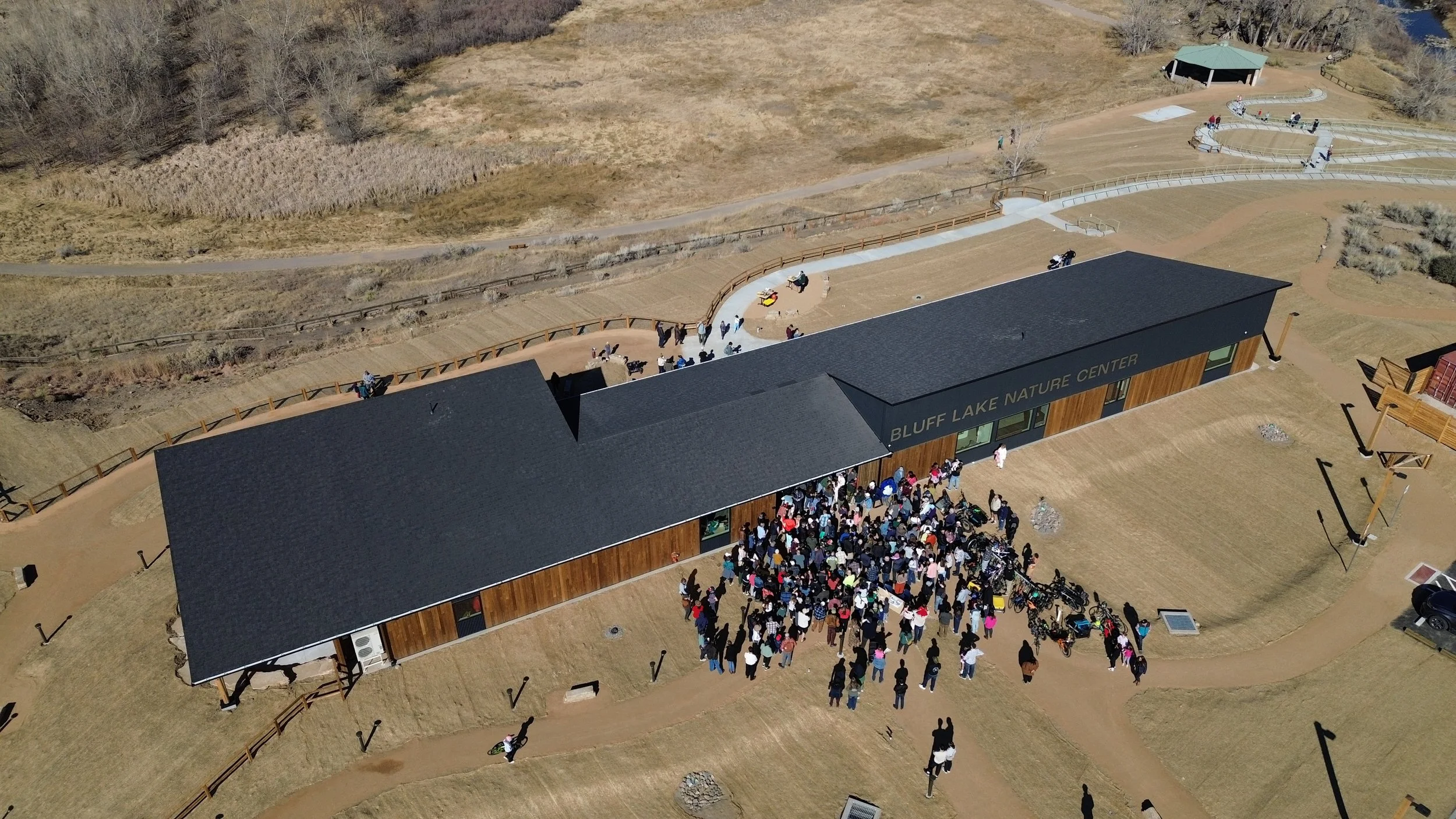 Shape Architecture Studio and Superbloom Landscape Architecture partnered with Bluff Lake Nature Center to design a new net-zero welcome and education center that supports the nonprofit’s expanding public, educational, and stewardship mission. Located within the 123-acre Bluff Lake Nature Center wildlife refuge in Northeast Denver, the building serves as a clear point of arrival for visitors while strengthening equitable access to nature for surrounding communities including Central Park, Montbello, Northwest Aurora, Park Hill, and Commerce City.
