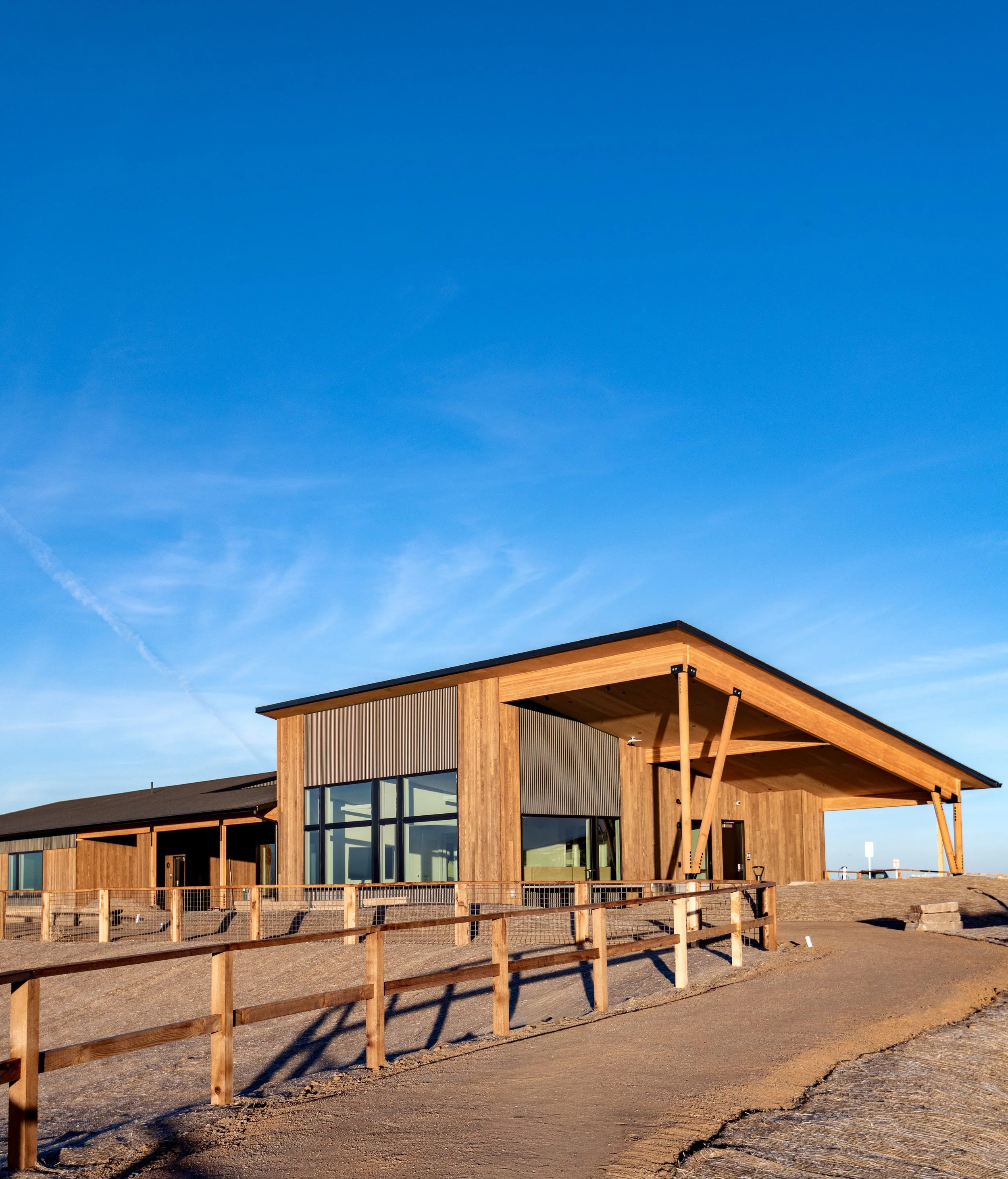 As visitation and educational programming have grown alongside nearby neighborhoods, Bluff Lake Nature Center identified the need for a permanent, on-site facility that could welcome guests, support learning, and house staff. The new center provides flexible indoor and outdoor spaces for education, gathering, and orientation, while allowing the organization to maintain a daily presence on the land it stewards.